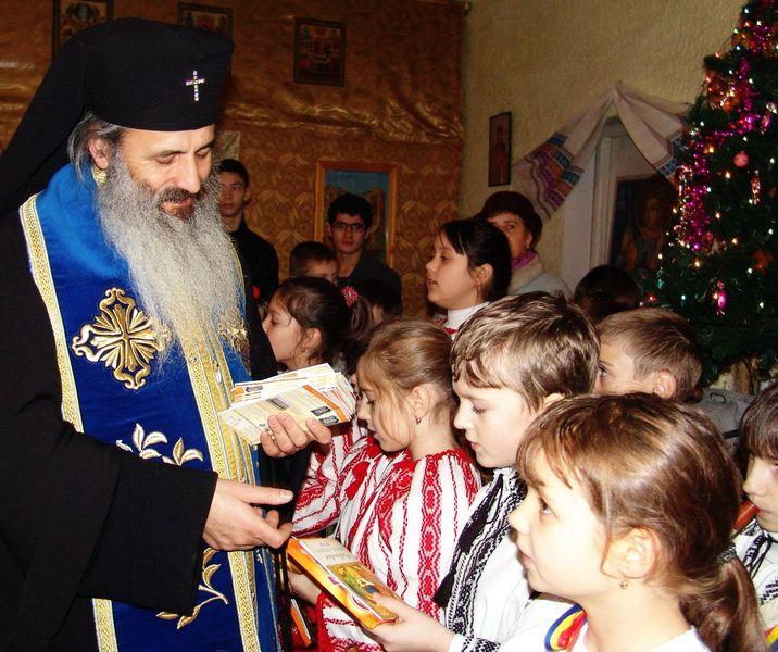 În încheiere grupul de copii “Moştenitorii” de la Şc. Nr.7 Dorohoi conduşi de soţii Înv. Bradu împreună cu grupul “Floare de colţ” al Asociaţiei Tinerilor Ortodocşi Dorohoi conduşi de pr. Ciprian Şoptică au făcut o surpriză I.P.S Teofan prin susţinerea unui mic concert de colinde. Copii au fost răsplătiţi de către părintele Mitropolit şi de către pr. paroh cu mici daruri.