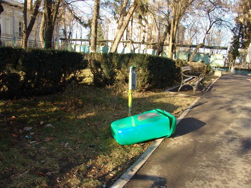 De ce nu se preda la politia locala (comunitara) pe baza de proces verbal acest mobilier? E rupt coșul din sectorul lui...sa plătească...sa îl înlocuiască...sa stea pe burta în tufiș la panda sa prindă măcar unul care distruge bunul nostru comun. Fiecare dintre noi avem o responsabilitate la locul nostru de munca. Măturătorul din piața are o matura și o lopata în primire...ei de ce nu ar răspunde ? Ei au în primire doar uniforma pe care cu mândrie o poarta. Nu sunt "ei" vinovați ci conducerea lor.