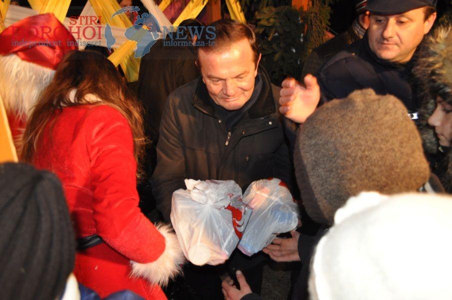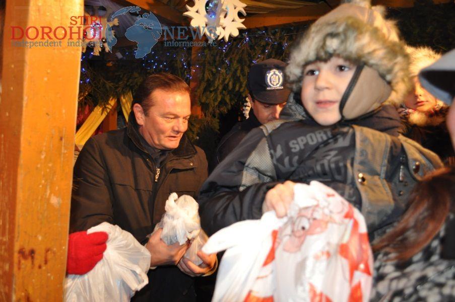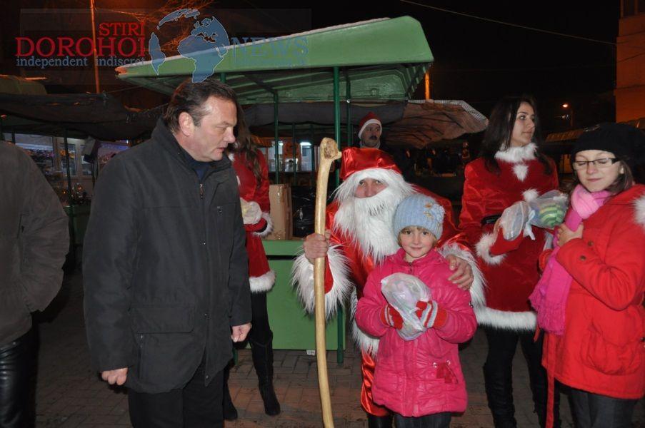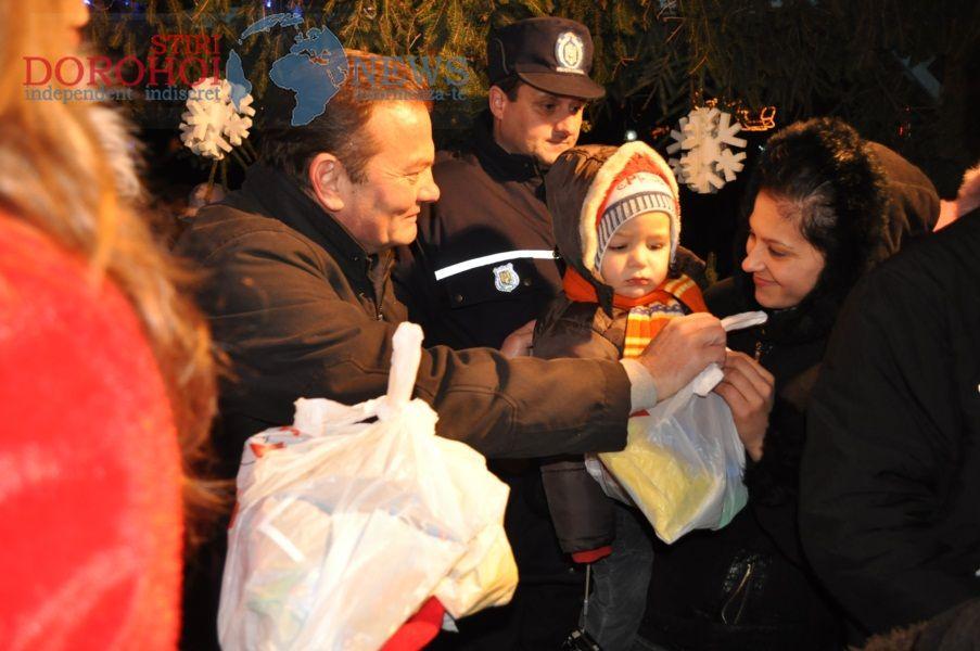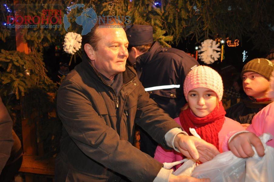 Primarul Dorin Alexandrescu și ajutat de trei Crăciunițe, au împărțit 800 de pachete cu dulciuri și 220 de pachete cu jucării, copiilor prezenți. Banii pentru aceste pachete au provenit din donații de la organizații neguvernamentale, destinate cadourilor de Crăciun pentru copiii din Dorohoi. „Moşul a fost generos, prin intermediul sponsorilor și am putut realiza peste 1000 de cadouri astfel cât mai mulţi copii să primească ceva de Crăciun", a declarat pentru Dorohoi News, primarul Dorin Alexandrescu.