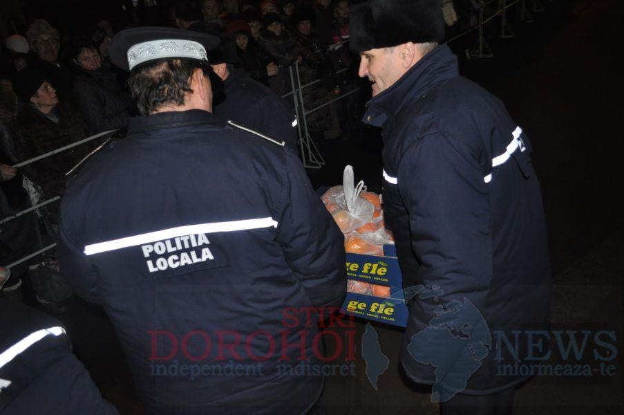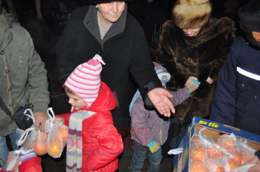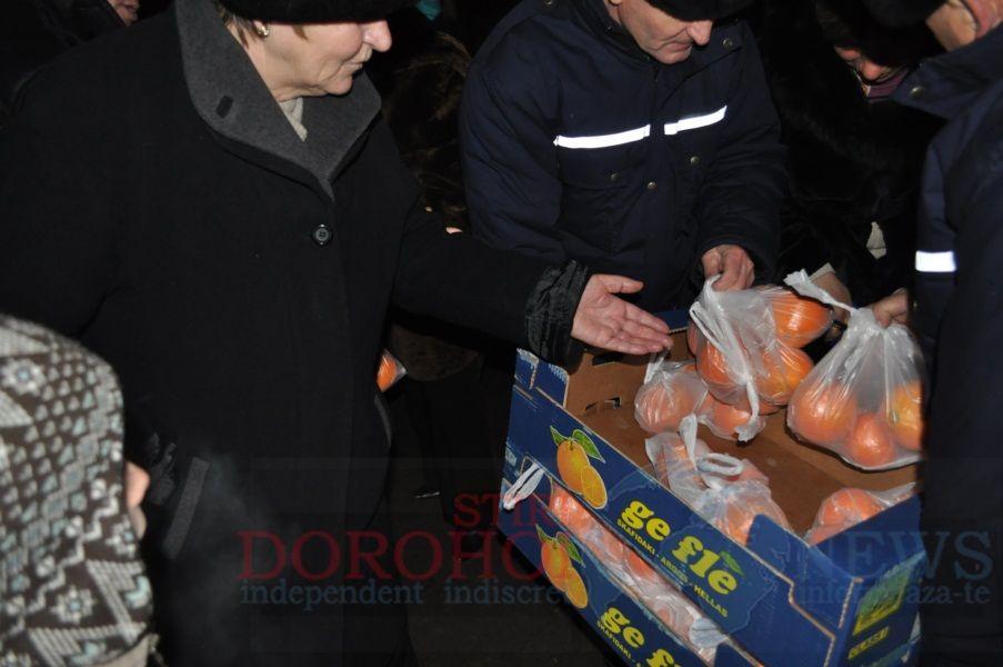 “Sunt impresionat de cantitatea de portocale donată şi ofer cu drag copiilor prezenţi la specatacol din această seară”, a declarat ing. Dorin Alexandrescu, primarul municipiului Dorohoi. Donaţia este făcută de un sponsor. (DorohoiNews.ro, Madalina O.)