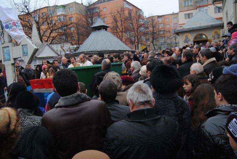 Apa sfințită este împărţită oamenilor şi poate fi băută timp de 8 zile, până pe 14 ianuarie. Despre agheasmă, oamenii cred că vindecă orice boală, aşa că se îmbulzesc, în fiecare an, ca să ia o sticluţă.