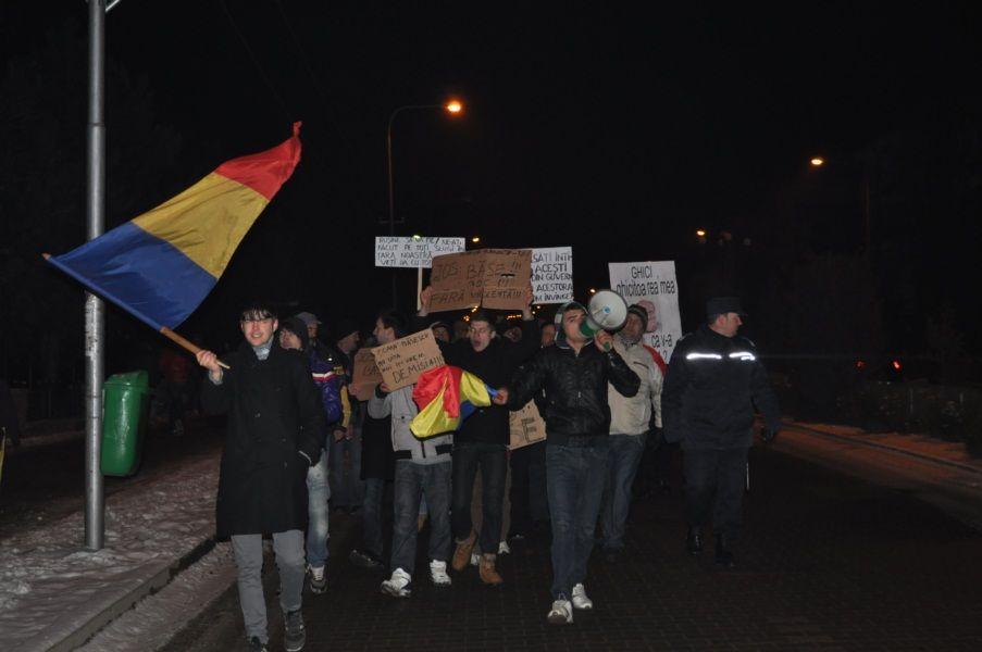 În a patra zi de proteste, la Dorohoi circa 100 de protestatari s-au solidarizat cu românii din întreaga țară. Dincolo de faptul că oamenii s-au declarat nemulțumiți de numărul mic al celor care au venit, aceștia au continuat să scandeze lozinci împotriva Guvernului Boc.