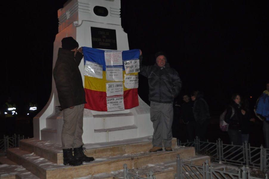 Cei peste 100 de dorohoieni s-au adunat ca să își manifeste nemulțumirea vis-a-vis de nivelul scăzut de trai, de salariile și pensiile mici și de faptul că s-au săturat de oamenii politici care conduc țara. Aceștia știu un singur lucru: că nu vor renunța la proteste până când Guvernul Boc nu își dă demisia.„Suntem aici pentru a fi solidari cu ceea ce se întâmplă în ţară, să dăm jos acest regim ticăloşit şi vom ieşi în stradă până vom scăpa de aceşti oameni fără suflet care au adus ţara la disperare.”, a declarat vicepresedintele PSD Dorohoi, Virgil Butnaru.