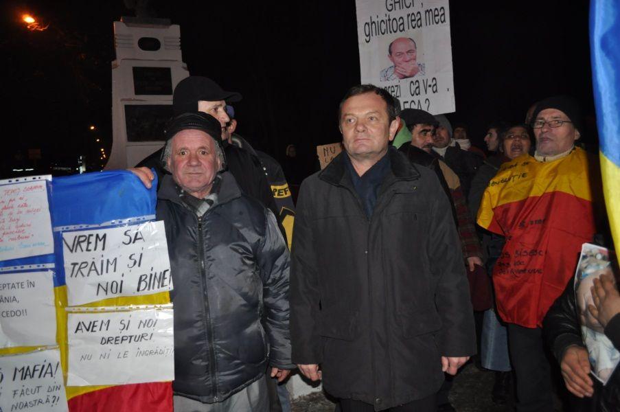 Flancaţi de jandarmi şi precedaţi de o maşină a poliţiei, cei peste 100 de protestatari dorohoieni, au coborât pe bulevardul Victoriei, ajungând în centru – pe pietonal, până la primăria veche. Printre manifestanţi s-a aflat şi primarul Dorin Alexandrescu. „Sunt la curent cu ceea ce se întâmplă în oraș și asta pentru că în fiecare zi sunt în contact cu oamenii, ori că vin ei la primărie, ori că merg eu în rândurile lor. Multe din nemulțumirile lor sunt îndreptățite și ceea ce îmi stă în puterea mea le voi rezolva sau le voi face să fie auzite acolo unde trebuie. Eu am trecut și voi trece în fiecare seară pentru a mă asigura să nu fie nici o escaladare de violență și ca lucrurile să se desfășoare pașnic și democratic. Fiecare cetățean are dreptul la opinie și are dreptul să își spună necazurile pe care le-a acumulat de-a lungul timpului, este un drept prin constituție”, a declarat pentru Dorohoi News, primarul Alexandrescu.