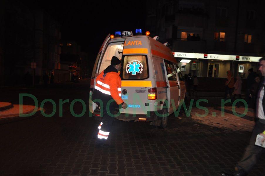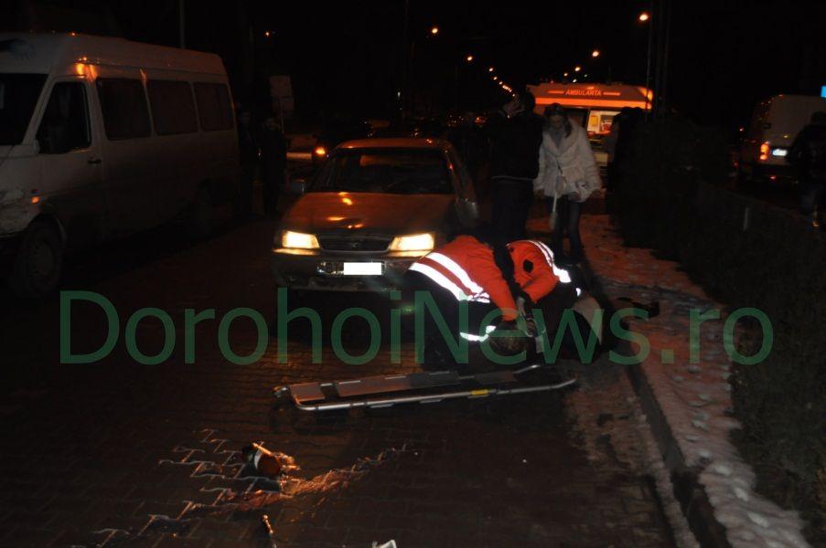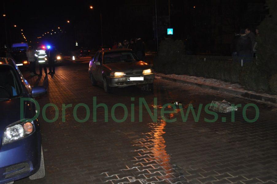 Sâmbătă 21 ianuarie, în jurul orei 18:45, Emilia C. de 65 de ani, a fost accidentată grav de un autoturism marca Cielo, în zona trecerii de pietoni din faţa Bisericii Sf. Vineri. La faţa locului s-a deplasat un echipaj al Poliţiei Rutiere Dorohoi şi o ambulanţă.