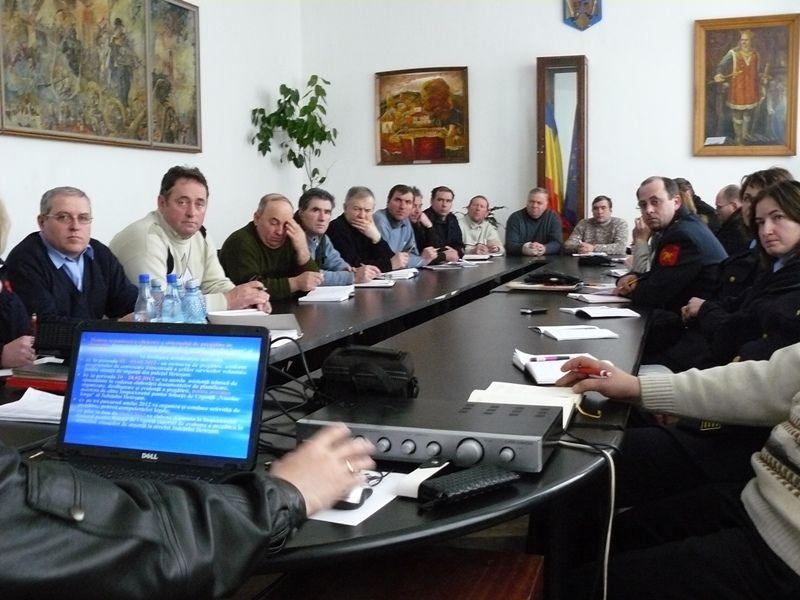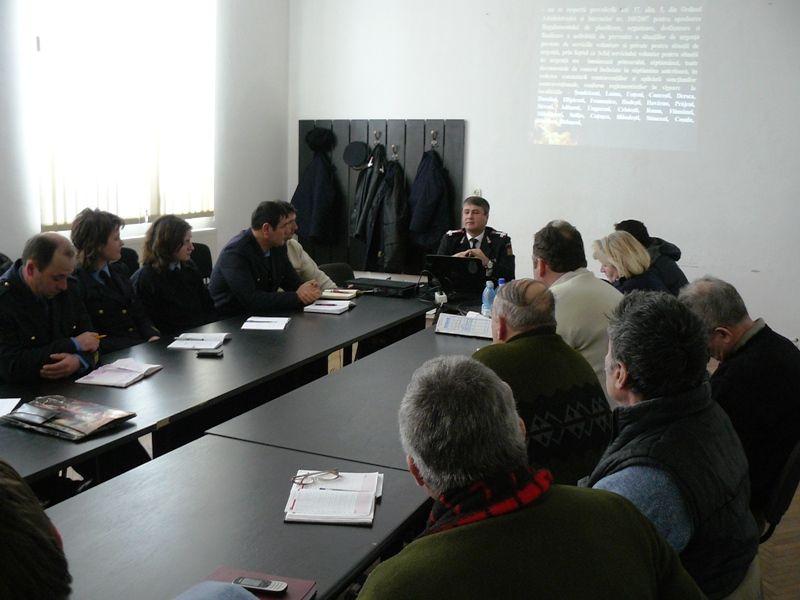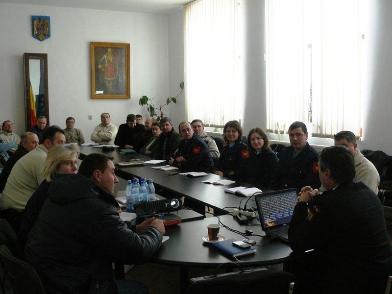 La Casa de Cultură a municipiului Dorohoi, în ziua de 03.02.2012, Inspectoratul pentru Situaţii de Urgenţă N. Iorga al judeţului Botoşani a desfăşurat instructajul trimestrial de pregătire cu inspectorii de protecţie civilă şi şefii serviciilor voluntare pentru situaţii de urgenţă din localităţile: Dorohoi, Bucecea, Brăieşti, Cîndeşti, Corlăteni, Dersca, Dimăcheni, Hilişeu-Horia, Leorda, Lozna, Mihăileni, Pomîrla, Şendriceni, Vf. Cîmpului, Văculeşti şi Vorniceni, instructaj care a avut ca obiectiv principal perfecţionarea deprinderilor pentru a acţiona cu operativitate şi profesionalism pe linia monitorizării şi gestionării situaţiilor de urgenţă generate de riscuri specifice domeniului de activitate. Vor fi prezentate actele normative care reglementează activitatea de prevenire a situaţiilor de urgenţă, managementul situaţiilor de urgenţă pe tipuri de risc specifice la nivelul localităţilor, metodologia executării controlului de prevenire, întocmirea documentelor specifice, precum şi aspecte referitoare la informarea preventivă a populaţiei în domeniul situaţiilor de urgenţă.
