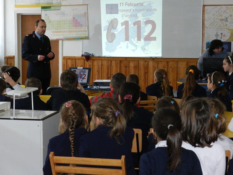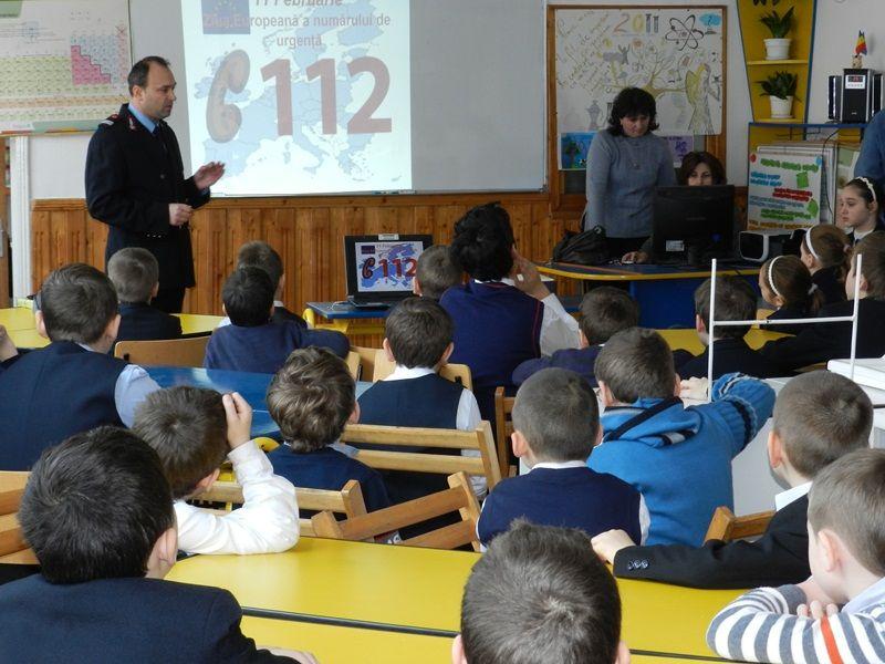 Elevii au aflat că 112 este unicul număr de urgenţă care poate fi folosit pentru a contacta serviciile de urgenţă (ambulanţă, I.S.U., jandarmi şi poliţie) în orice ţară din UE şi că trebuie apelat doar atunci când este necesară intervenţia acestora, pentru asigurarea asistenţei imediate în situaţii în care este periclitată viaţa, integritatea ori sănătatea unei persoane, ordinea publică, proprietatea publică sau privată ori mediul înconjurător.