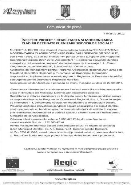 Proiectul mare, „Reabilitarea și modernizarea urbană a municipiului Dorohoi”, este dat la verificare la A.N.R.M.A.P. și se așteaptă avizul acestora pentru a putea intra pe platforma de licitații SEAP. (DorohoiNews.ro, Andrei B.)
