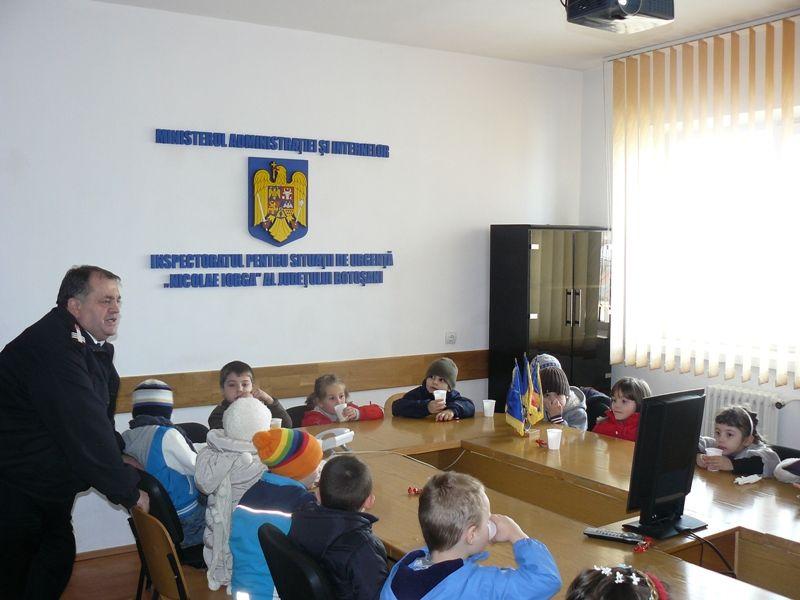 Peste 300 de preşcolari şi elevi de la Grădiniţa nr. 14 Botoşani, Şcolile nr. 6, 10 din municipiul Botoşani, Şcoala „Mihai Eminescu” Ipoteşti, Liceul cu Program Sportiv Botoşani, Liceul Teoretic „Nicolae Iorga” Botoşani, Centrul de Studii „Ştefan cel Mare şi Sfânt” Botoşani şi Şcoala cu clasele I-VIII Orăşeni Deal au vizitat, în zilele de 2 şi 3 aprilie, Inspectoratul pentru Situaţii de Urgenţă „Nicolae Iorga” al Judeţului Botoşani.