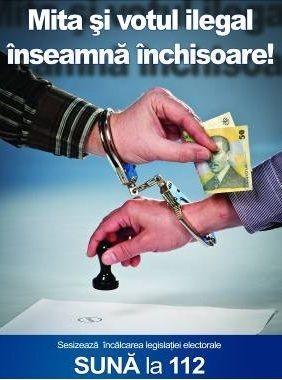 Sub sloganul „Mita şi votul ilegal înseamnă închisoare!”, Ministerul Administraţiei şi Internelor, prin structurile sale teritoriale, va desfăşura în perioada 10 mai – 10 iunie a.c., o campanie de informare şi conştientizare a cetăţenilor cu privire la sancţiunile prevăzute de lege în cazul votului ilegal şi a mitei electorale.