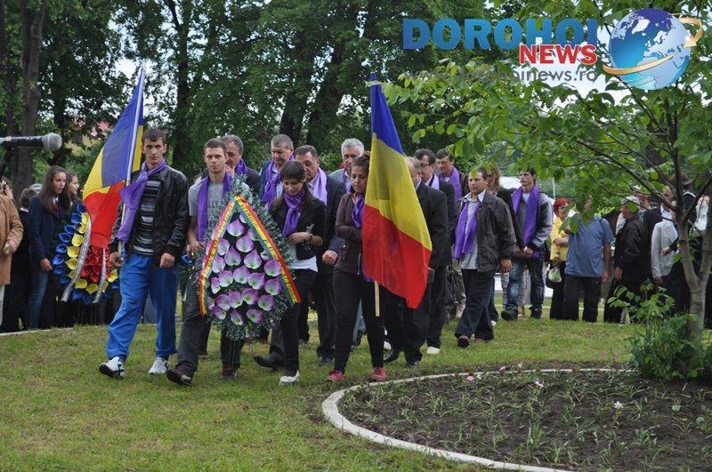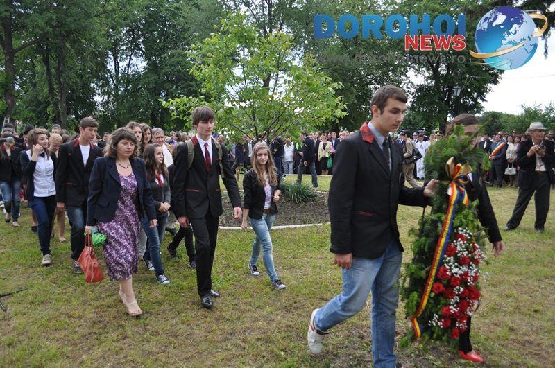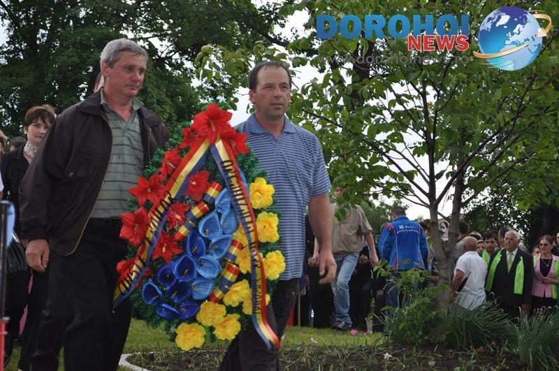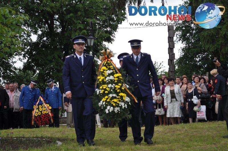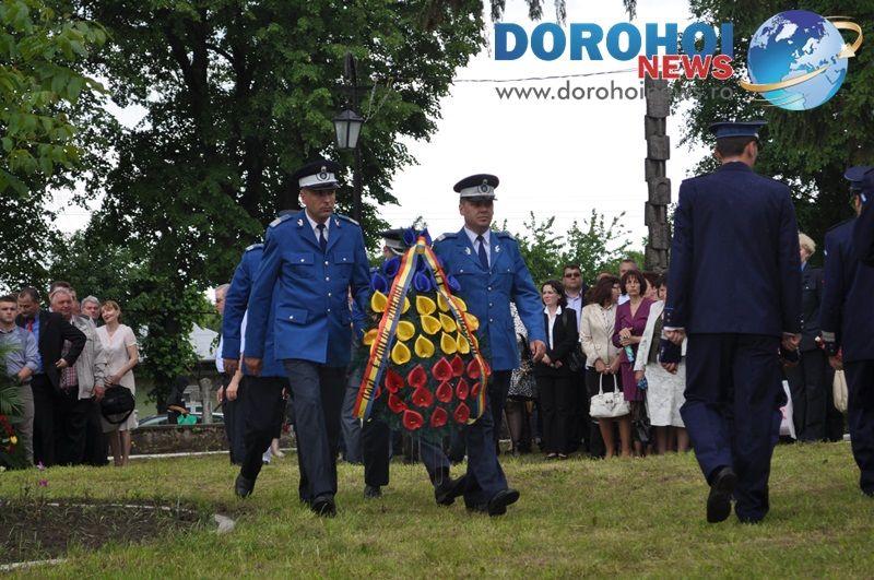 Festivitatea a debutat cu o slujbă religioasă care a fost oficiată de un sobor de preoţi din Protopopiatul Dorohoi, urmată de cuvântul primarului municipiului Dorohoi şi apoi de depunerile de coroane.