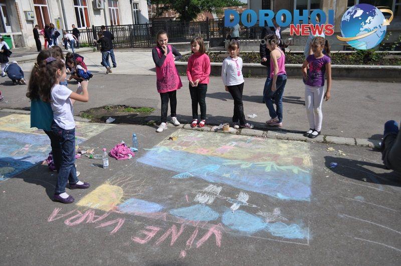 Ieri, 30 mai, copii de la aproape toate unitatile de invatamant din Dorohoi, au participat la un concurs de desene pe asfalt, organizat in cinstea lor.