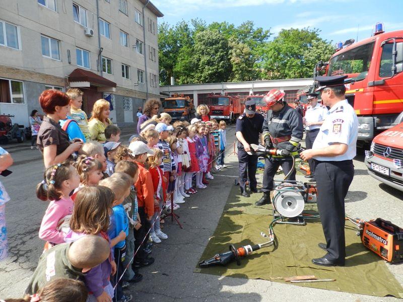 Preşcolarii care frecventează Grădiniţa „Il Girotondo” din municipiul Botoşani au primit astăzi, 1 iunie 2012, vizita angajaţilor Inspectoratului pentru Situaţii de Urgenţă „Nicolae Iorga” al Judeţului Botoşani. Pompierii au venit să-i înveţe cum să prevină sau să se comporte într-o situaţie de urgenţă.