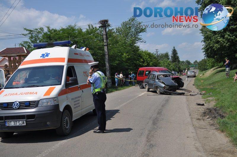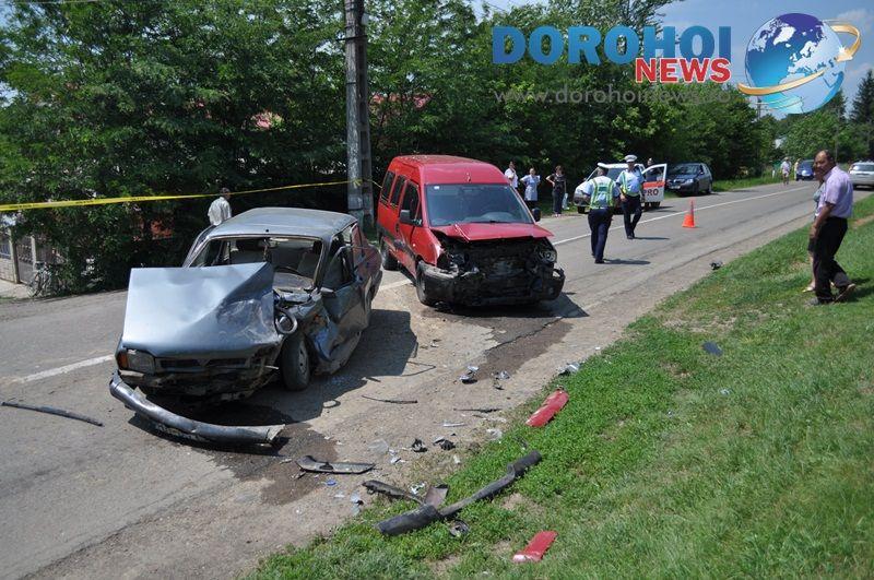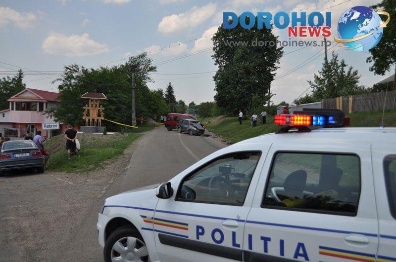 Dumitru O. în vârstă de 35 de ani, din Botoşani, circula pe drumul DJ 291C din direcţia Pomîrla către Dorohoi şi a intrat în coliziune cu un autoturism Dacia 1310, condus de Vasile F., în varstă de 28 de ani, din satul Pădureni, comuna Şendriceni, care a ieşit de pe un drum lateral din directia Pădureni fără a acorda prioritate.