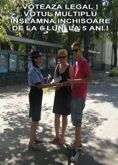 Poliţiştii s-au deplasat în zone cu trafic pietonal intens din municipiul Dorohoi, cu scopul de a transmite mesajul campaniei către un număr cât mai mare de cetăţeni, cărora le-au detaliat reglementările din Legea nr.3/2000 cu privire la mita electorală, precum şi cu privire la fapta de a vota de mai multe ori în ziua referendumului.