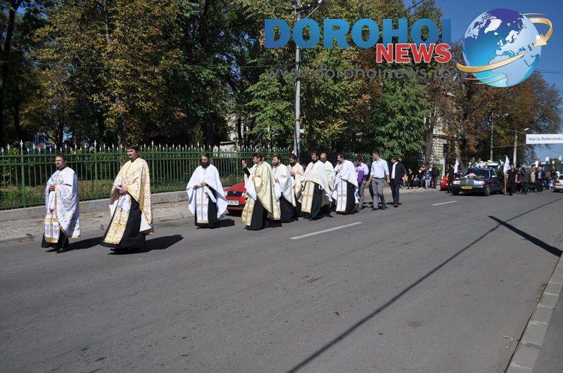 Sute de persoane, rude, prieteni, dar și simpli dorohoieni s-au strâns încă de dimineață în curtea Catedralei din Dorohoi pentru a-și lua rămas bun.