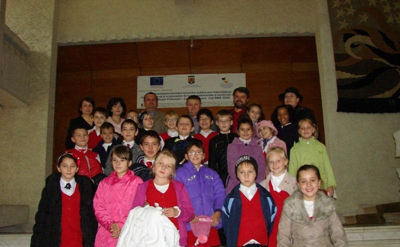 Elevii clasei a III-a din programul „step-by-step” al Liceului Teoretic „Nicolae Iorga” au vizitat astăzi Palatul Administrativ.  În cadrul programului tematic „Botoşani, meleag natal”, derulat de învăţătoarele clasei, copiii şi-au poropus să viziteze principalele instituţii publice din municipiu, astăzi fiind rândul Primăriei, Prefecturii şi al Consiliului Judeţean.