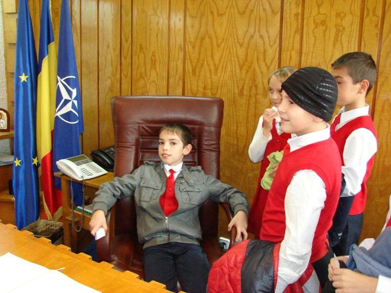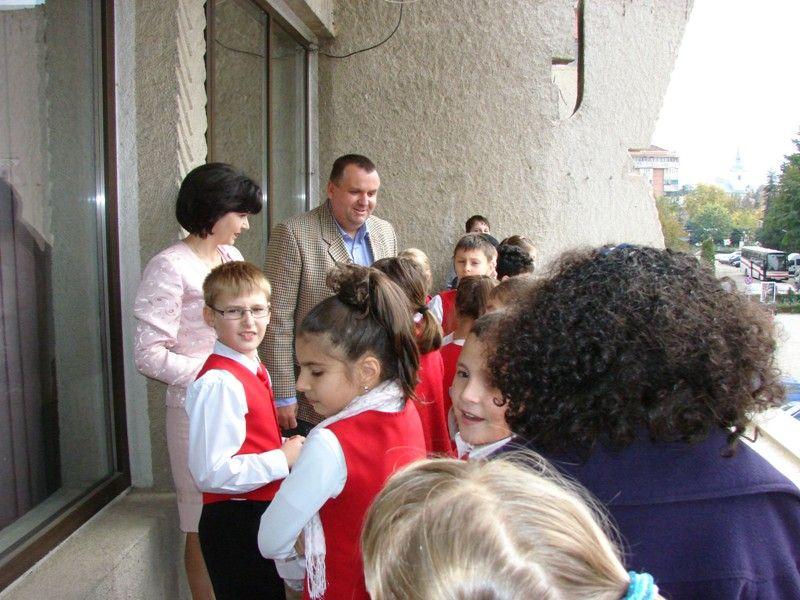 Serviţi cu bomboane şi sucuri naturale de către preşedintele Consiliului Judeţean, Florin Ţurcanu, micuţii au fost întâmpinaţi pe placul lor. Adrian Constantinescu, prefectul judeţului, a stat de vorbă cu ei şi le-a arătat Piaţa Revoluţiei din balconul Palatului Administrativ. Micii musafiri au avut ocazia să încerce scaunele prefectului, preşedintelui CJ, trecând şi prin birourile vicepreşedinţilor Doina Federovici şi Gheorghe Sorescu.