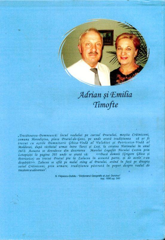 Pagini interesante sunt alocate culegerilor de folclor din comuna Păltiniş, unde ne întâlnim cu nume de oameni cu reale contribuţii în conservarea zestrei culturale şi artistice a acestor locuri: Valentin Ştefan, Felicia Asofie, Petru Lisenchi, Julieta Cuzic, Ion Popa, Gabriela Anisie, Vasile Nanea. Autorii dedică un interesant segment al lucrării legendelor, articolelor din presă, fotografiilor şi documentelor “coborâtoare pe firul timpului”. Scrisă cu talent evocator, cu un anume patos al imaginii – Adrian Timofte este fiu al acestor locuri -, cu însufleţitoare gânduri şi demne de urmat îndemnuri, cartea – “pornită” de la găsirea unei monede de argint purtând efigia împăratului roman Antonius Pius (157 e.n.), după cum ne mărturisesc autorii -, are un farmec al scrisului îngrijit şi poate duce la redescoperirea istoriei acestor aşezări moldave. (Cornelius Drescanu)