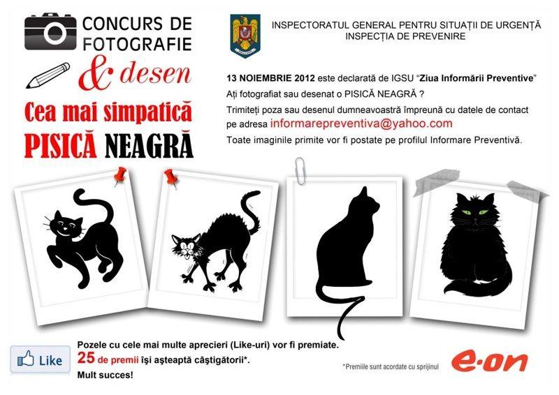 Tot cu ocazia Zilei Informării Preventive, Inspectoratul General pentru Situaţii de Urgenţă a lansat concursul de fotografie & desen „Cea mai simpatică pisică neagră”, care poate fi accesat pe adresa http://www.facebook.com/informarepreventiva. Fotografiile şi desenele pot fi trimise pe adresa informarepreventivă@yahoo.com, iar cele care vor aduna cele mai multe aprecieri (Like-uri) vor fi premiate cu sprijinul E-ON.