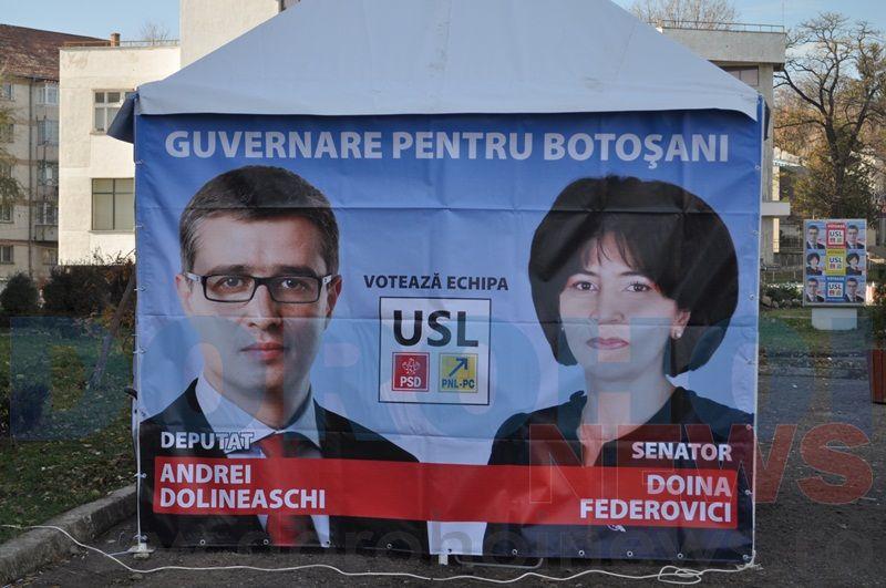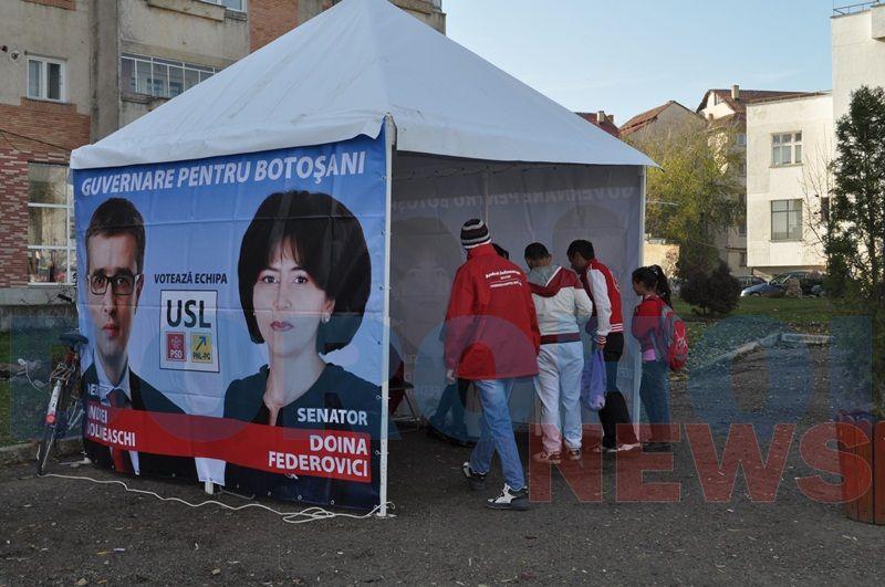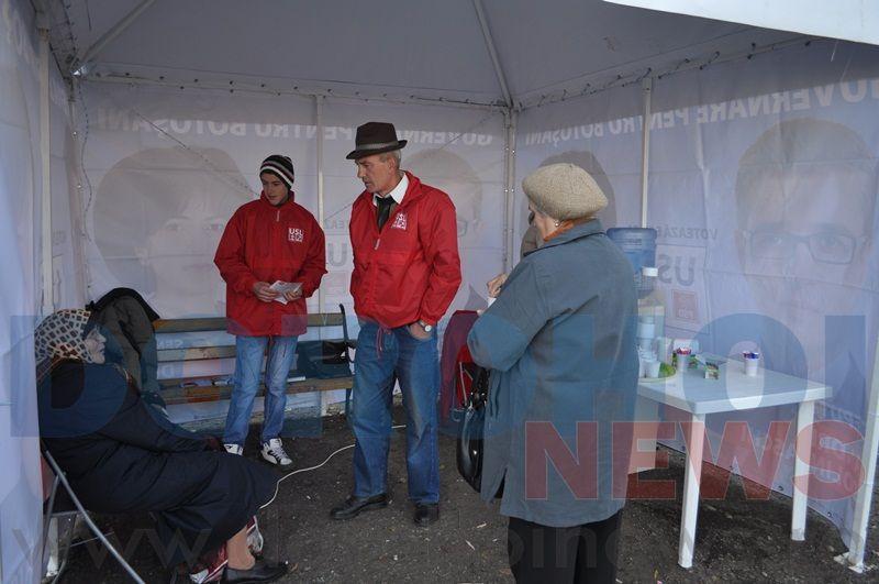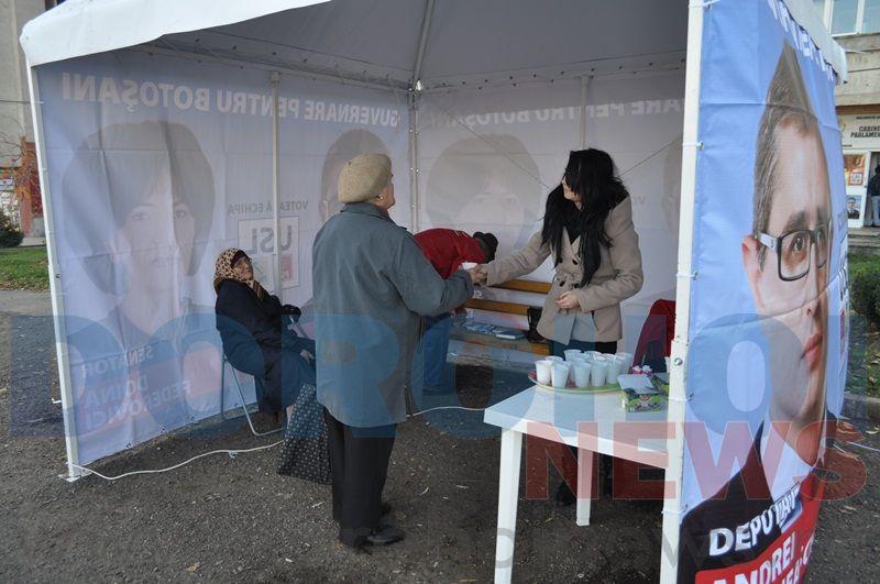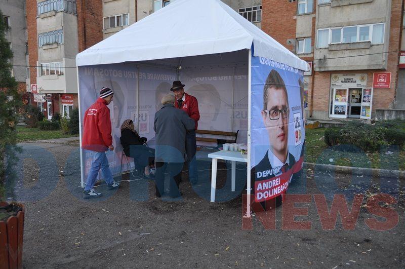 În cursul zilei de duminică echipa de campanie a celor doi candidați au instalat pe Pietonalul Grigore Ghica din Dorohoi un cort de unde cetățenii primesc informații, pliante, afișe, calendare și un pahar cu ceai cald.