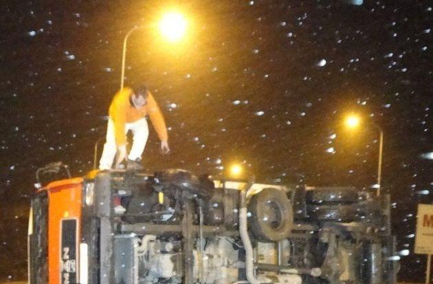 Pentru a fi repus pe roţi, camionul a avut nevoie de o mara. Pentru evenimentul produs, şoferul de 36 de ani nu a fost sancţionat.