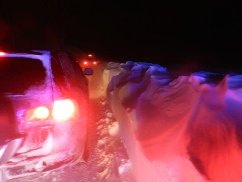 Prezent în zonă pentru monitorizarea stării drumurilor, un echipaj al I.S.U. Botoşani a început acţiunea de salvare, transportând la Botoşani, cu autospeciala Touareg, opt persoane preluate din autoturismele care mai aveau puţin combustibil în rezervor sau nu aveau sisteme de încălzire.