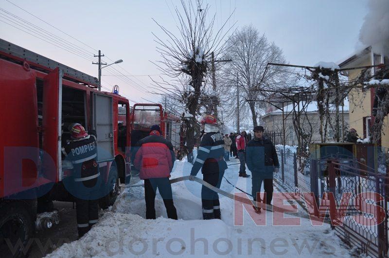 „Am fost apelaţi prin numărul de urgenţă 112 despre faptul că un incendiu se manifesta la o casă de locuit, pe hol şi la trei camere, cu pericol de propagare la pod şi la parter. Incendiul s-a localizat, a fost stins şi s-au îndepărtat toate pericolele. La faţa locului s-a acţionat două autospeciale cu apă şi spumă şi o Autospecială de Primă Intervenţie şi Comandă, 11 subofiţeri şi doi ofiţeri.”, a declarat pentru Dorohoi News, împuternicit comandant Detașament Pompieri Dorohoi, căpitan Sorin Barbacariu.