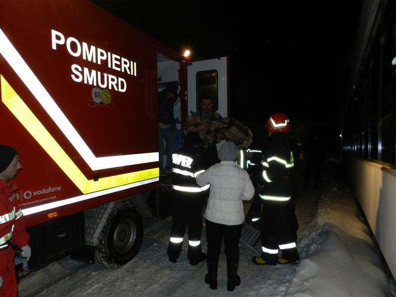 Intervenţia a fost extrem de dificilă, întrucât vântul bătea cu putere, reducând vizibilitatea. Salvatorii au străbătut o parte din traseu şi pe câmp, din cauza stratului de zăpadă troienită de pe drum, care în unele zone atingea şi trei metri.