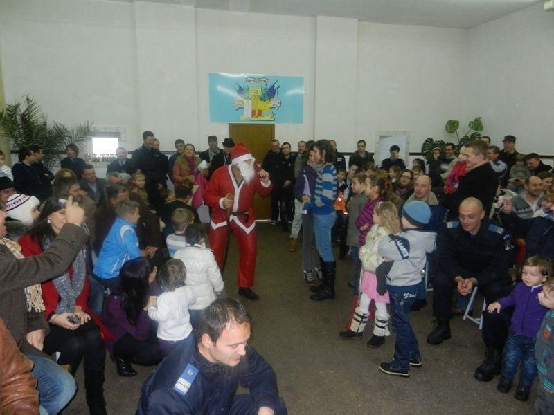 După ce un grup de copii din localitatea Vorona a colindat la sediul Inspectoratului de Jandarmi Judeţean Botoşani, a venit rândul lui Moş Crăciun să îşi facă apariţia şi să aducă bucurie în sufletul micuţilor. Încărcat cu daruri ca în fiecare an, Moşul i-a răsplătit pentru că au fost cuminţi, au ascultat de părinţi şi au învăţat bine la şcoală. Rând pe rând, toţi au primit cadouri şi s-au fotografiat cu el.