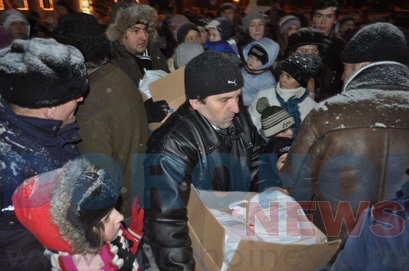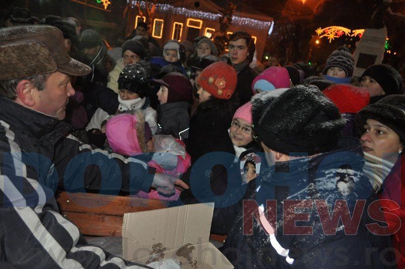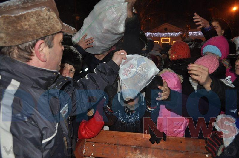 Primarul Dorin Alexandrescu, ajutat de trei Crăciunițe, au împărțit aproximativ 1000 de pachete, copiilor prezenți. Banii pentru aceste pachete au provenit din donații de la organizații neguvernamentale, destinate cadourilor de Crăciun pentru copiii din Dorohoi. „Moşul a fost generos, prin intermediul sponsorilor și am putut realiza peste 1000 de cadouri astfel cât mai mulţi copii să primească ceva de Crăciun", a declarat pentru Dorohoi News, primarul Dorin Alexandrescu. Andrei B.