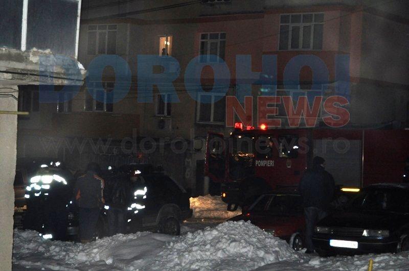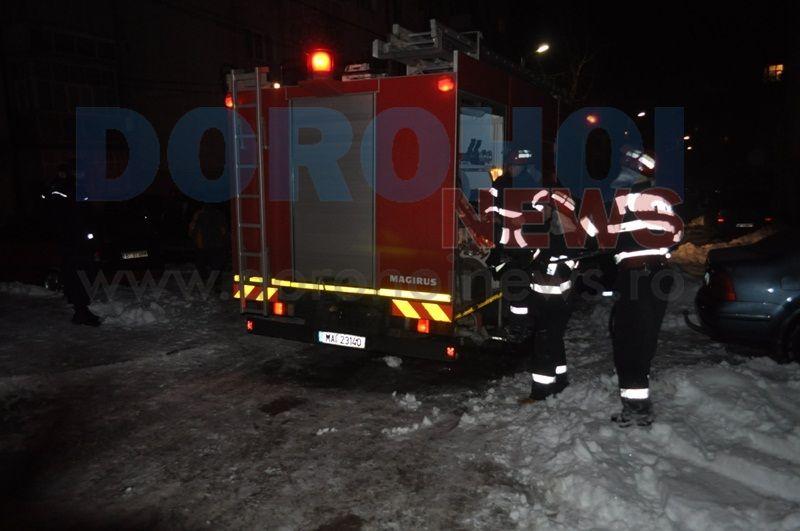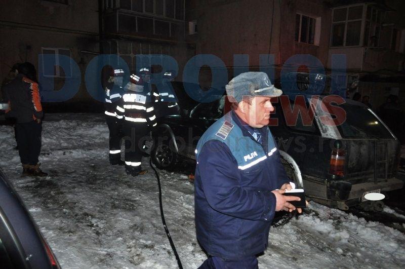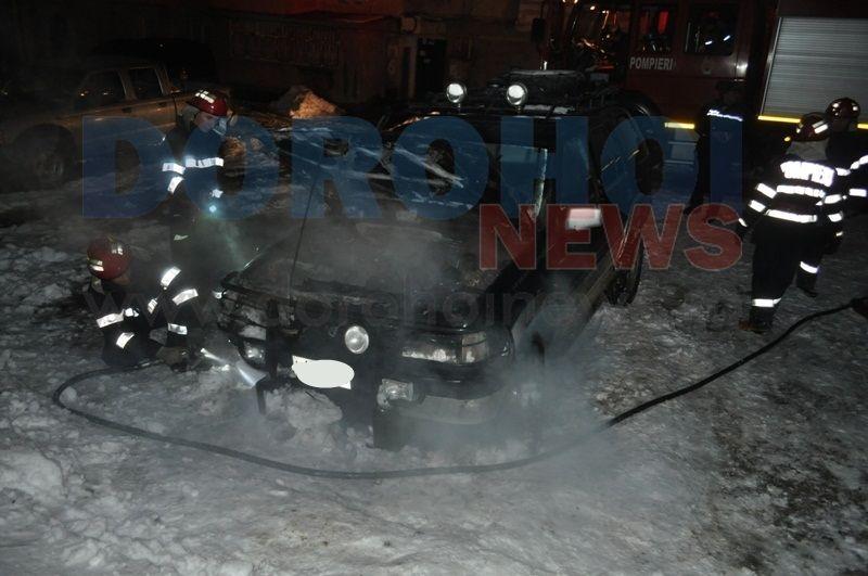 La faţa locului s-a deplasat un echipaj din cadrul Detaşamentului de Pompieri Dorohoi, cu o autospecială cu apă şi spumă și un echipaj mixt de polițiști și jandarmi. La sosirea gărzii de intervenţie, ardea partea din faţă a autoturismului, existând pericolul ca flăcările să se extindă și la alte mașini parcate în zonă.