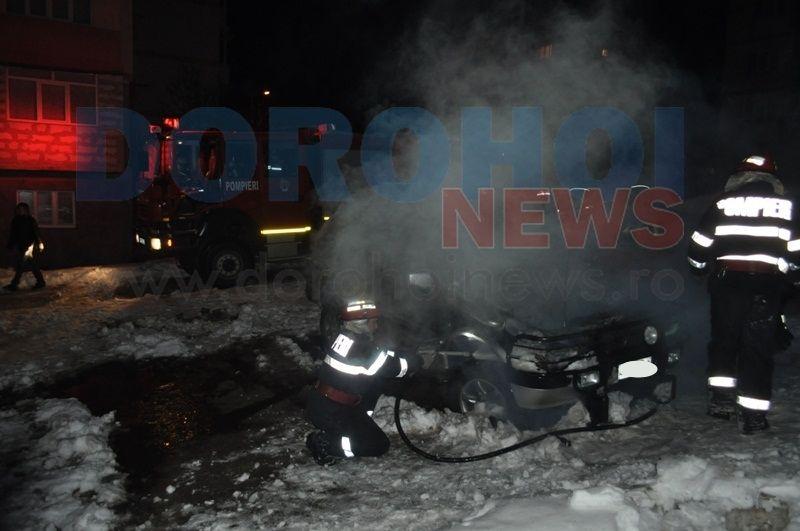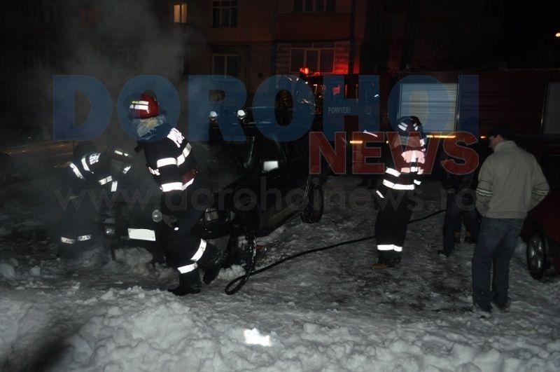 Pompierii dorohoieni au fost solicitaţi luni, 11 februarie, în jurul orei 20:30, printr-un apel la numărul de urgenţă 112, pentru a interveni la stingerea unui incendiu izbucnit la o mașină parcată pe Aleea Iasomiei din municipiul Dorohoi. „Am ieșit la geam să trag draperia și am observat flăcări la o mașină care se afla în parcare. Am sunat imediat la 112 și am alertat proprietarul.”, a declarat pentru Dorohoi News, un vecin al păgubitului.
