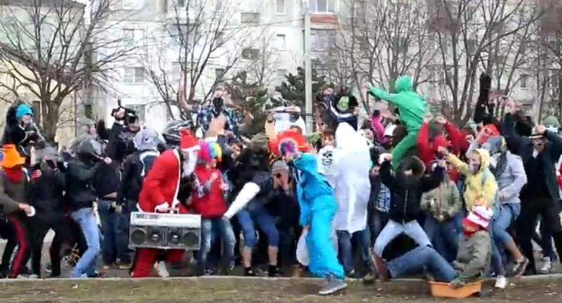 Nici un spaţiu, cât de mic sau de public, nu mai este suficient de convenţional pentru un dans Harlem Shake. Costumaţi în diferite personaje, uneori parţial dezbrăcaţi, tinerii se mişcă în ritmurile deja celebre cu zeci de mii de variante în întreaga lume.