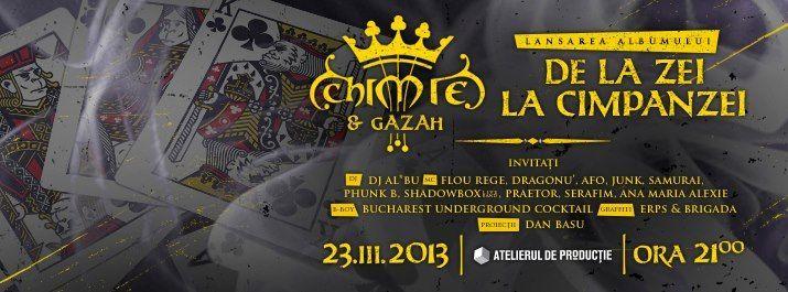 Improvizația nu s-a oprit acolo, iar Chimie a continuat colaborarea cu Ana Maria, Banda Agurida și cu Loredana. O parte din rezultatele acestor întâlniri de studio se regăsesc pe albumul „De la zei la cimpanzei”, al doilea material solo semnat Chimie după „Mambo Siria”. Lansarea acestuia are loc sâmbătă, 23 martie, la Atelierul de Producție din București (Splaiul Unirii 160), începând cu orele 22:00.