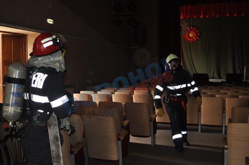 „Exercițiul de astăzi a fost efectuat ca urmare a producerii unui incendiu datorat unui cutremur simulat. Pe timpul exercițiului, pompierii militari au intervenit atât pentru descarcerarea și acordarea primului ajutor medical calificat unei persoane accidentate în interiorul Sălii de Spectacole, cât și descarcerarea unei persoane din fiarele contorsionate ale unei mașinii implicate într-un accident de asemenea simulat. Acest exercițiu este parte componentă a pregătirii de specialitate a pompierilor militari pentru protejarea și salvarea bunurilor materiale și a vieților omenești.”, a declarat pentru Dorohoi News, comandant Detașament Pompieri Dorohoi, căpitan Sorin Barbacariu.