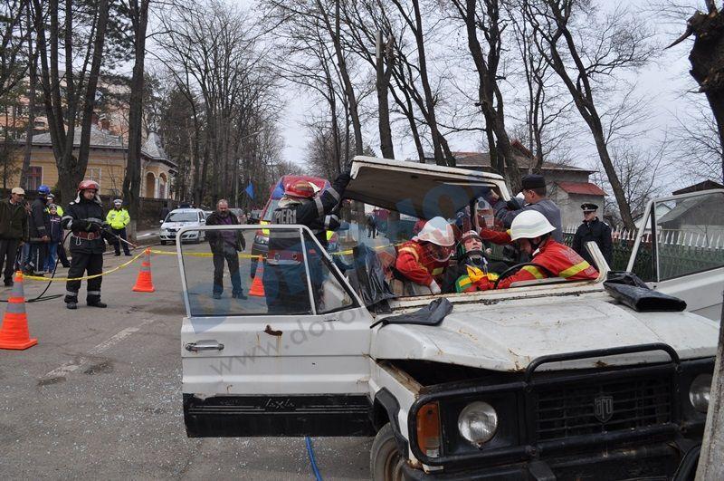 În cadrul aceluiași exercițiu a fost simulat și un accident rutier cu o persoană încarcerată, aceasta fiind extrasă din fiarele contorsionate ale mașinii cu ajutorul echipamentelor de descarcerare, iar paramedicii au acordat primul ajutor calificat și au transportat pacientul la Unitatea de Primire Urgențe din cadrul Spitalului Municipal Dorohoi.