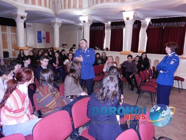 Cei aproximativ 60 de elevi din clasele a 9- a şi a 10- a au fost interesaţi de aspectele prezentate de jandarmi , având loc discuţii libere pe această temă.