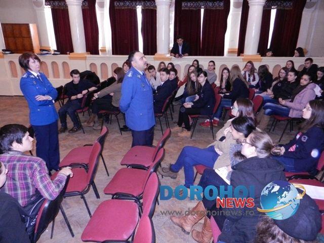 Cei aproximativ 60 de elevi din clasele a 9- a şi a 10- a au fost interesaţi de aspectele prezentate de jandarmi , având loc discuţii libere pe această temă.