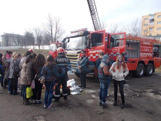 Elevii prezenţi au avut ocazia să manevreze şi să folosească echipamente de protecţie şi parte din materialele de pe autospecialele de intervenţie. Elevii au fost parte componentă a unor jocuri interactive organizate de pompieri pentru aprofundarea deprinderilor în vederea înlăturării riscurilor precum  şi cunoaşterea modului de comportare atunci când acestea apar. La finalul vizitei elevii au primit în dar pliante şi afişe cu reguli şi măsuri de comportare.