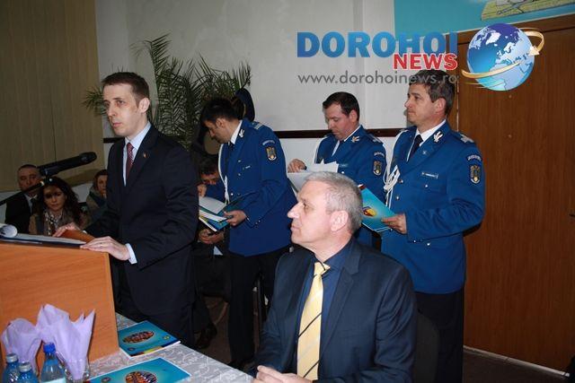După prezentarea semnificaţiei zilei de 3 aprilie – Ziua Jandarmeriei Române, au fost prezentate mesajele de felicitare transmise jandarmilor botoşăneni de către domnul Valeriu Zgonea – preşedintele Camerei Deputaţilor , domnul prim-ministru Victor Ponta, domnul Radu Stroe – ministrul afacerilor interne şi inspectorul general al Jandarmeriei Române – domnul colonel dr. Mircea Olaru .