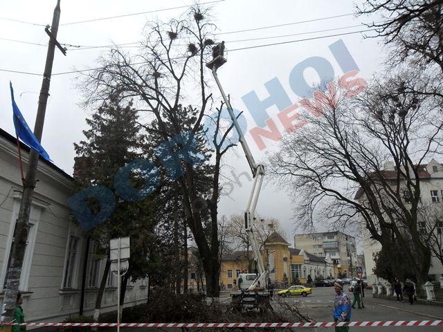 Tocmai de aceea, municipalitatea dorohoiană a declanşat acum în luna curăţeniei şi operaţiunea de eliminare a ciorilor, folosindu-se de un utilaj special, cu braţ telescopic, care se ridică la o înălţime de 22 de metri.