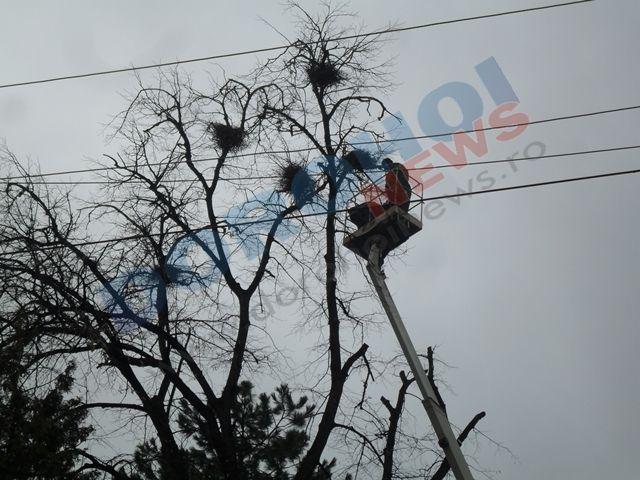 Cu ajutorul acestuia au fost doborâte zeci de cuiburi de ciori, în plus au fost curăţate şi crengile uscate din copacii care sunt imbatraniti.