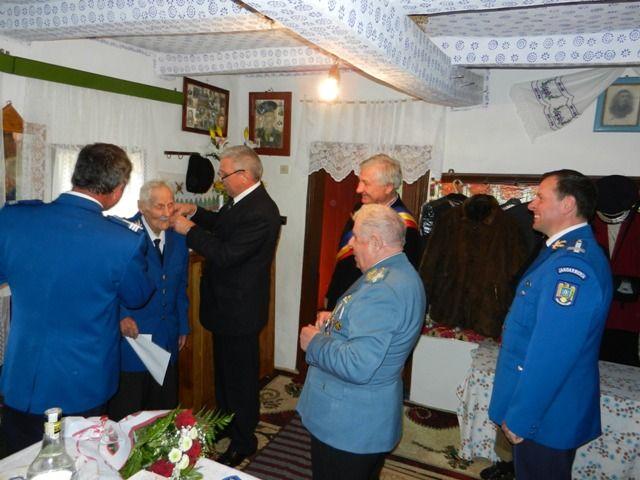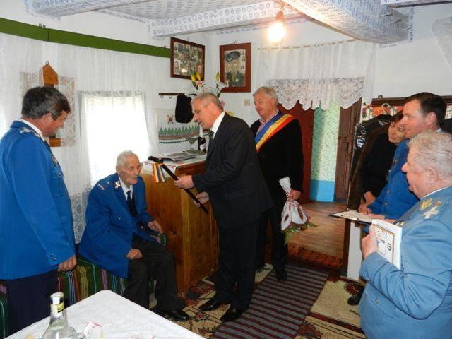 Domnul prefect Costică Macaleţi a avut onoarea de a da citire Ordinului Ministrului Afacerilor Interne, prin care veteranul jandarm a fost înaintat la gradul de locotenent şi i-a făcut cadou acestuia un baston, în semn de respect pentru venerabila vârstă la care a ajuns.