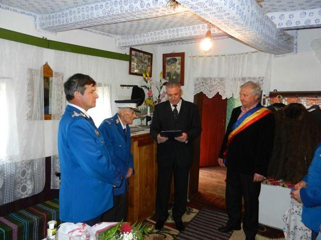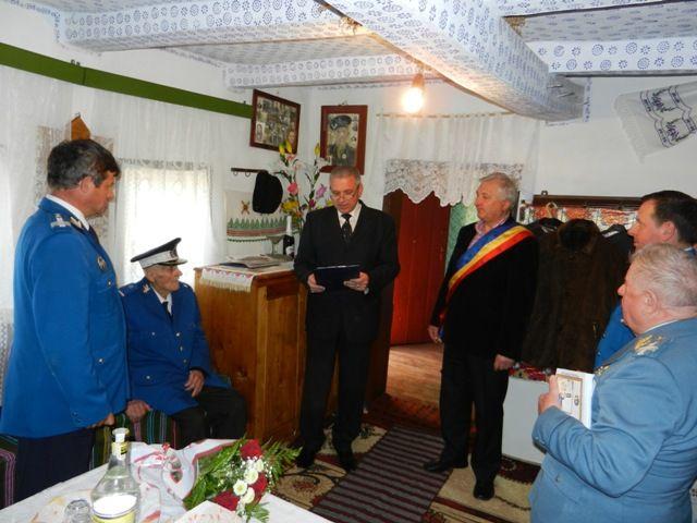 La acest moment emoţionant din viaţa veteranului jandarm, au ţinut să-i fie alături domnul prefect Costică Macaleţi, domnul colonel Constantin Moroşanu - inspector şef al Inspectoratului de Jandarmi Judeţean Botoşani, şeful biroului resurse umane din cadrul inspectoratului – lt.col.Onofrei Dobrin, primarul Viorel Atomei , precum şi preşedintele Asociaţiei Veteranilor de război din M.A.I. – colonel (r) Mihai Drăguţu .