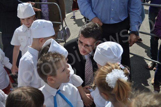 Dorin Alexandrescu împreună cu deputatul Andrei Dolineaschi, senatorul Doina Federovici, prefectul Costică Macaleți şi Mihaela Huncă, inspectorul general al IȘJ Botoșani, au fost alături de copiii din Dorohoi, pentru a-i sărbători.