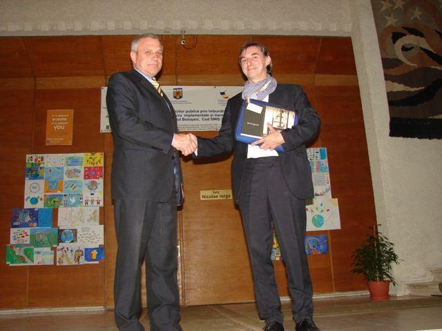 Musafirul a detaliat şi o discuţie pe care avut-o, tot astăzi, cu reprezentanţii Colegiului Naţional „A.T.Laurian”, în cadrul acesteia arătându-se de acord cu posibilitatea elevilor botoşăneni de a da examenul pentru D.E.L.F sau D.A.L.F. (diplome de atestare a cunoaşterii limbii franceze recunoscute pe plan internaţional) la sediul colegiului botoşănean. Astfel, aspiranţii la cele două atestate nu vor mai trebui să meargă în Iaşi pentru a susţine testarea.