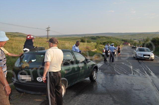 Conducătoarea auto, Luminița C., a fost scoasă din mașina care între timp a luat foc, de locuitorii din zonă, iar incendiul a fost stins de aceștia.