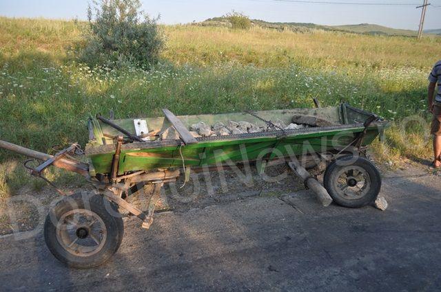 În căruță se aflau doi tineri, Lucian S. de 20 de ani, din satul Stracova, comuna Șendriceni, care conducea atelajul și fratele acestuia Dănuț S. de 17 ani, care se afla în partea din spate a atelajului. Deși impactul a fost violent și a întors atelajul la 180 de grade, niciunul din cei doi tineri nu au suferit răni, ambii alegându-se cu o sperietură zdravănă.