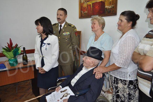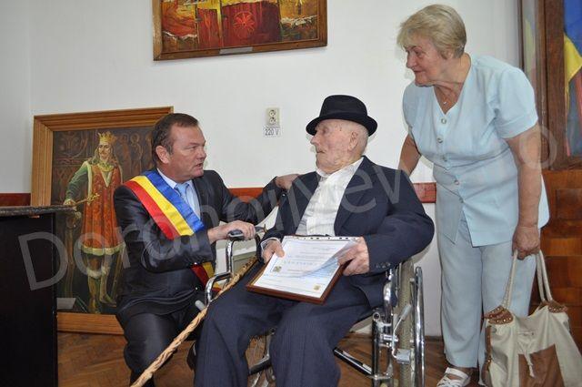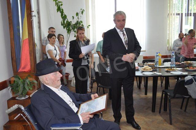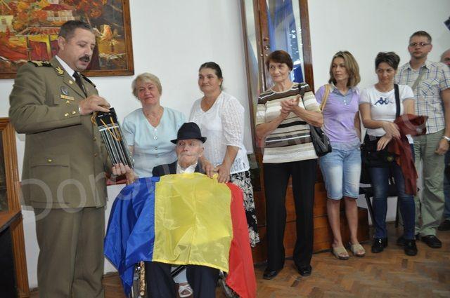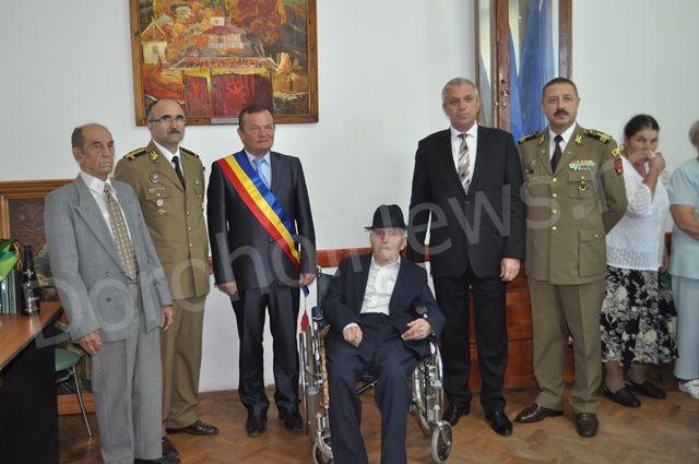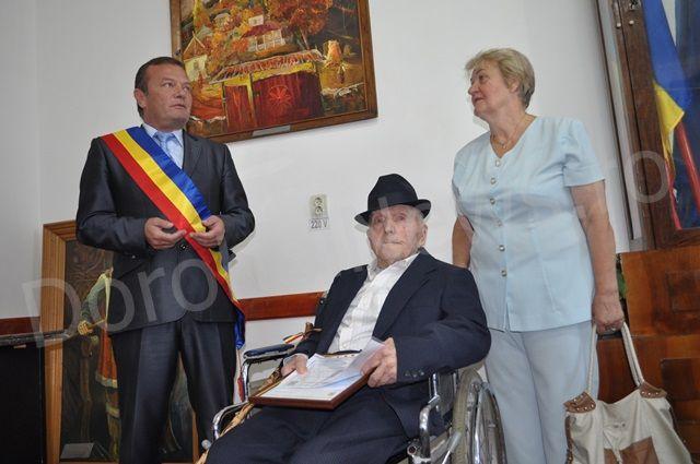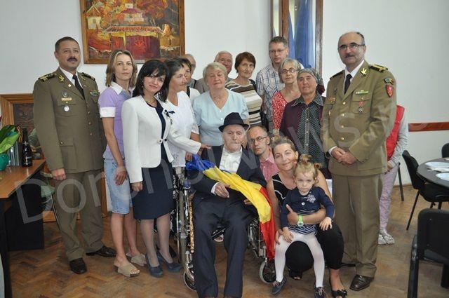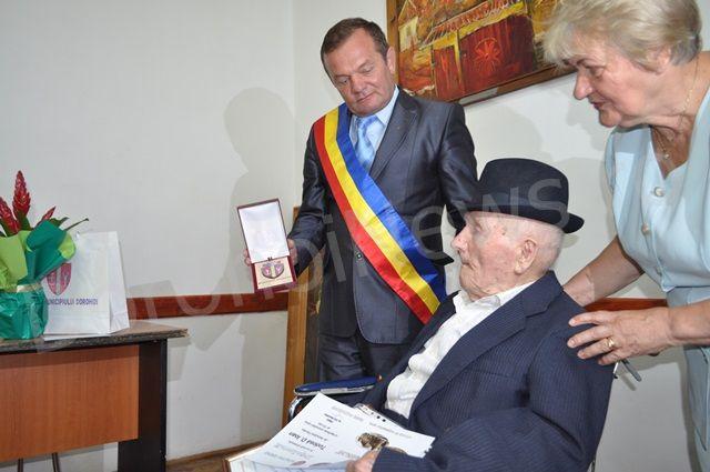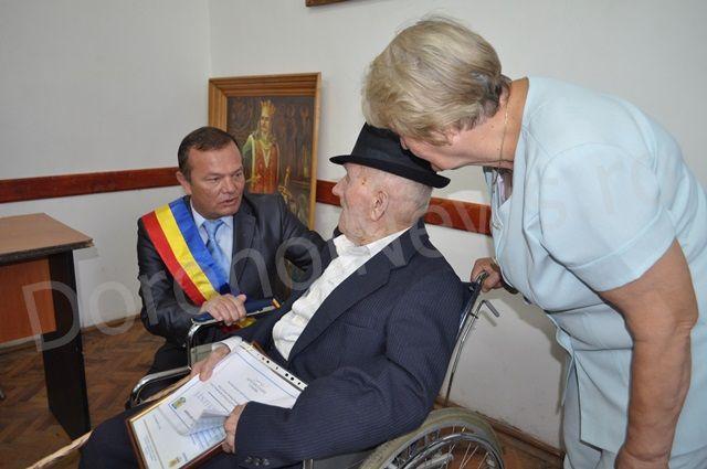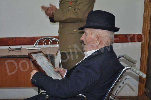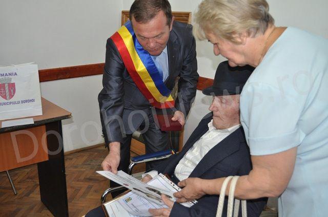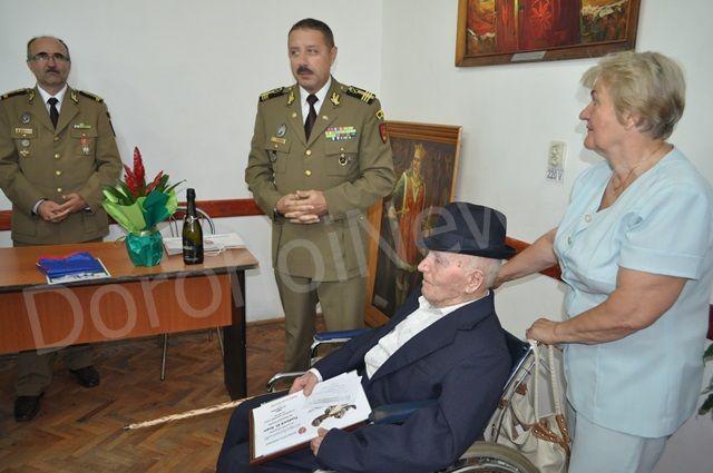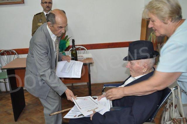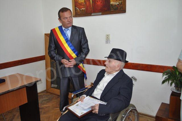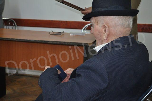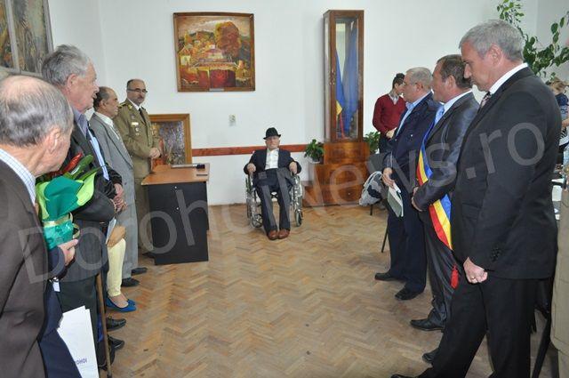 Prezent la această întâlnire, prefectul Costică Macaleți a oferit acestuia un baston cu tricolor și o diplomă de excelență, declarându-se bucuros să întâlnească „oameni care au eliberat România ca noi să putem trăi astăzi în democrație. Noi facem tot posibilul ca să urmărim în mod cinstit și corect faptele de vitejie ale înaintașilor noștri”, a adăugat acesta. Primarul municipiului Dorohoi, Dorin Alexandrescu a declarat că se mândrește cu cetățenii în vârstă ai orașului și a înmânat o diplomă cu aspecte mai vechi ale Dorohoiului și placheta care reprezintă orașul. „Ați avut o viață într-adevăr deosebită, o viață de front în care ați apărat patria sau ați luptat pentru România la propriu, fiind chiar în miezul bătăliei. Lucrul acesta face ca soldatul român, indiferent de războiul în care a luptat, să fie pe un loc de cinste al aprecierilor noastre, ale tuturor. Mă mândresc cu cetățenii mei în vârstă pentru că dacă am căpătat ceva din experiență, e și datorită faptului că m-am sfătuit cu cei mai bătrâni, care au o bogată experiență de viață.”